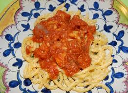 Un’ altra specialità sono le busiate, un tipo di pasta fatta in casa a forma di spirale, che contiene bene il sugo.