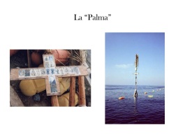 Le forti connotazioni religiose di questa pianta, le cui foglie adornavano i carretti e i “capioni” delle barche siciliane, vengono ignorate dai tonnaroti, che però nella “palma” sono riusciti a sintetizzare mirabilmente saperi empirici, sentimenti religiosi, conoscenza nautica e tradizioni secolari: quando non esistevano gli strumenti elettronici di navigazione (radar, Gps) la croce con i santi era l’unica emergenza visibile da lontano, su cui indirizzare la prua delle barche; se la corrente porta a fondo le reti, con esse si immerge anche il palo con la croce, e dalla porzione sommersa il rais è in grado di capire quanto violenta sia la stessa corrente; inoltre i “movimenti” della palma – graduale affioramento o affondamento – segnalano l’andamento della corrente, se in aumento o diminuzione.